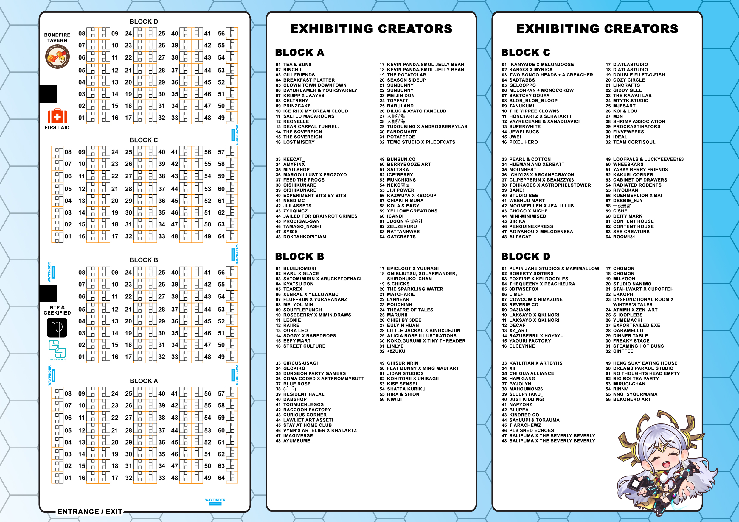 | C01 ikanyaide x MelonJoose | C17 D.atlastudio | C33 Pearl & Cotton | C49 Loofpals & LuckyEevee153 |