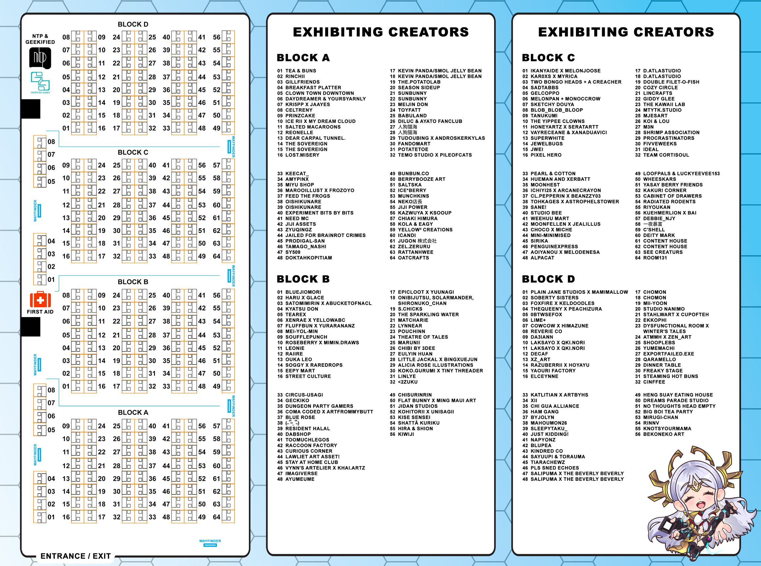 | C04 Sadtabbs | C20 Cozy Circle | C36 ichiyi25 x arcanecrayon | C52 Kakuri Corner |